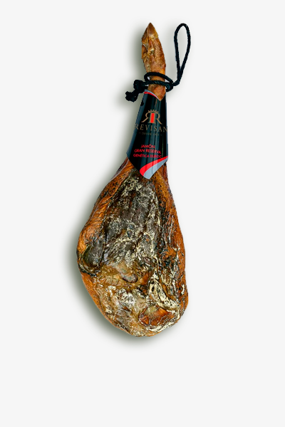 Jamón de cerdo blanco Duroc, con 18 - 20 meses de curación. Sabor más suave, con un punto equilibrado de sal